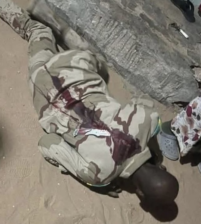وتداولت مواقع التواصل صورة العسكري وهو ملقى على الأرض والدماء تسيل من ظهره، بعد تلقيه طعنة بسكين.