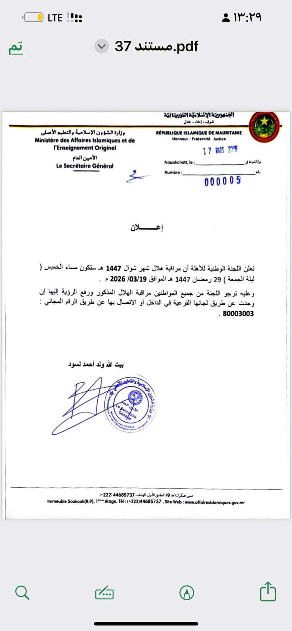 المقر : îlot 148 دار السلامة بدار النعيم - نواكشوط
