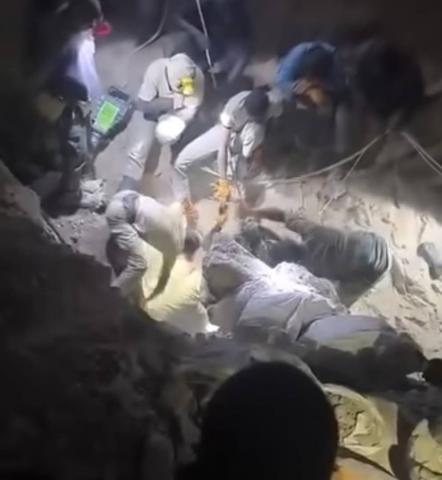 وبعد محاولات مستميتة من المنقيب إستمرت لساعات تمكن المنقبون من إنتشال جثمان المنقب.